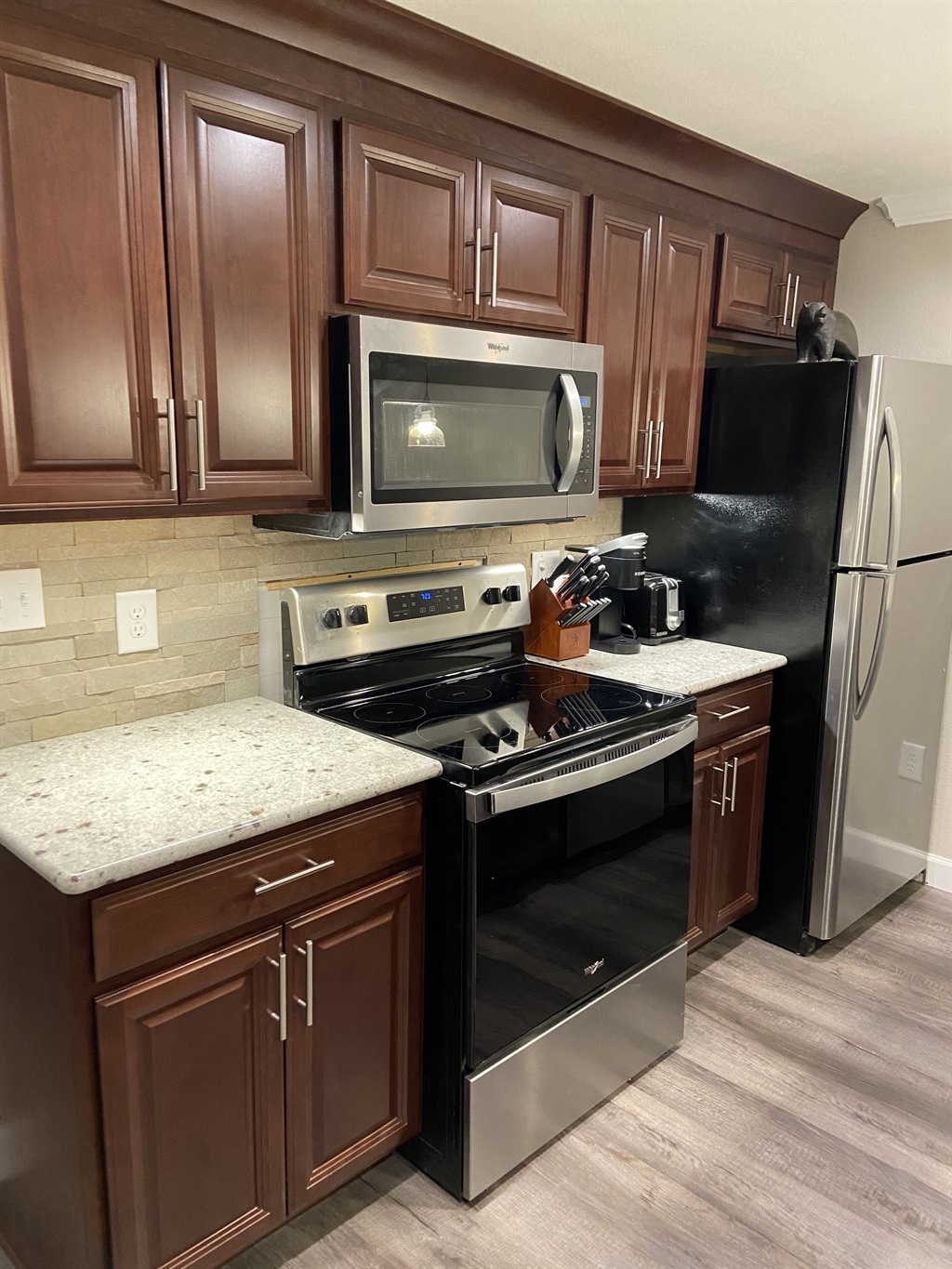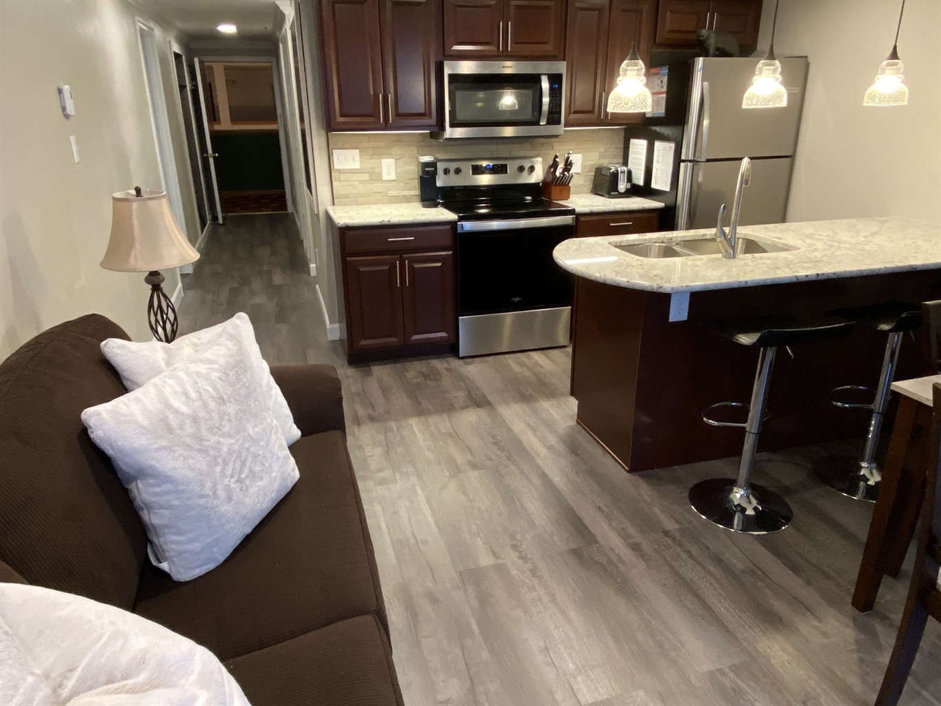 We remodeled this condo from top to bottom!! New cherry kitchen cabinets, all new stainless steel appliances, granite island with sink and dishwasher, textured walls, crown molding and luxury vinyl plank throughout the condo. A bunkbed with twin beds is now located in the bedroom along with a queen bed. The bunk bed features Ashley memory foam mattresses for your comfort. The bunkbed is for kids under 18. Extra hooks are conveniently located to hang all your ski gear.