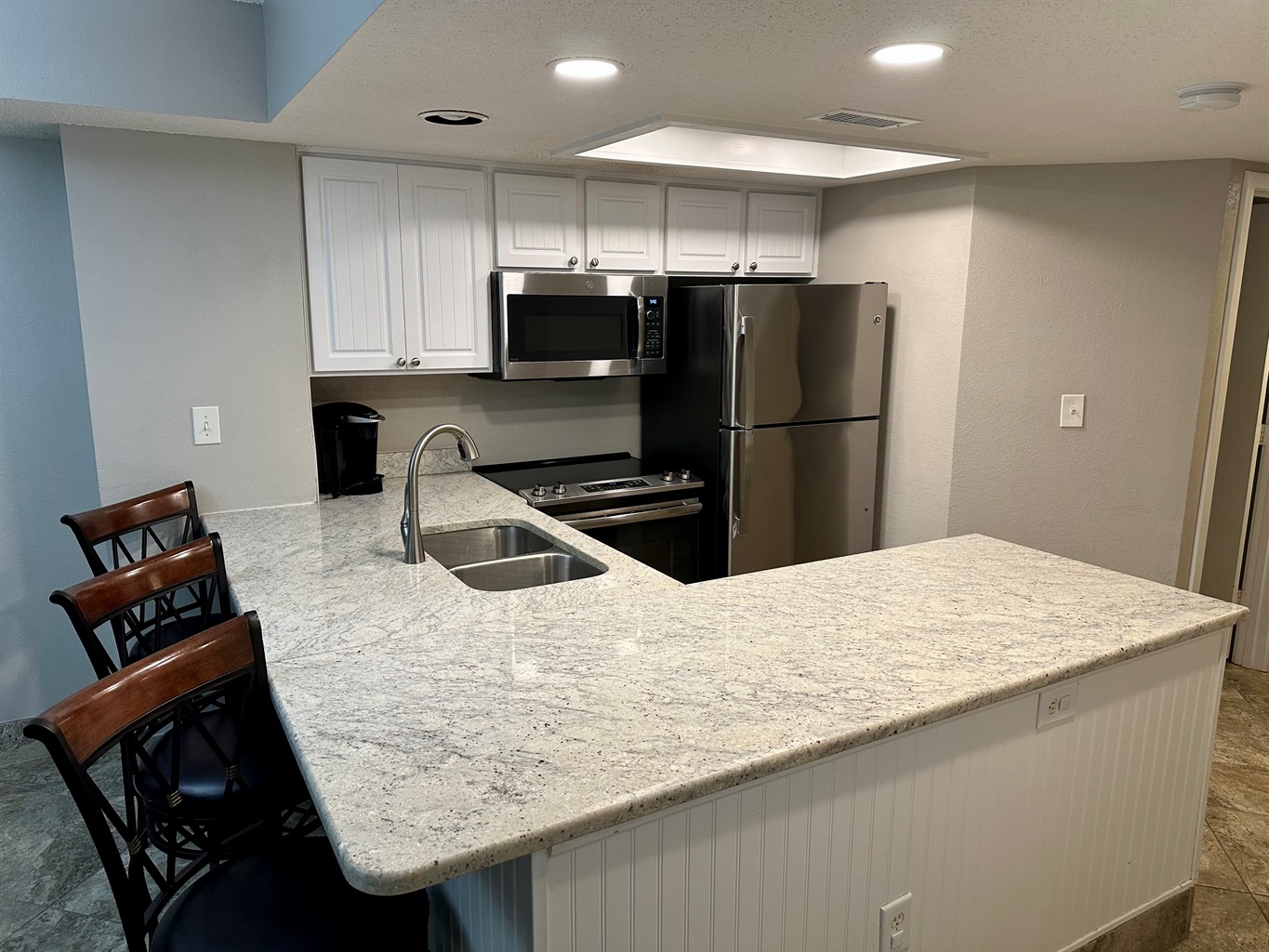 Newly remodeled condo with granite and new cabinets. There is a 55” flat panel TV on the wall in the living room and 32' flat panel TV's in the bedrooms. There are also 2 queen beds in the 2nd bedroom (instead of 2 doubles).